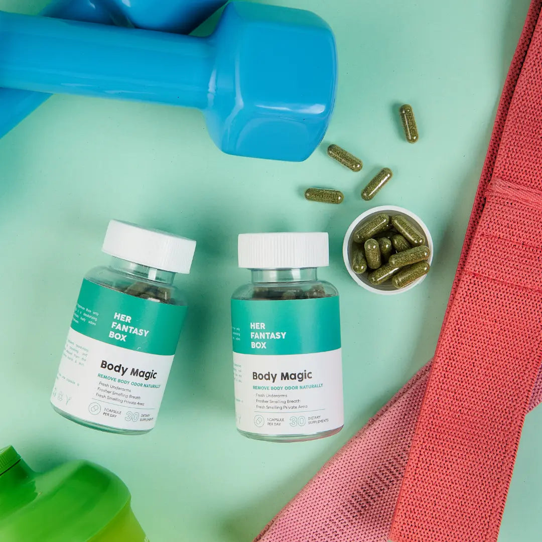 ¡Pues una capsula de BODY MAGIC contiene los 3 ingredientes para asegurarte que puedas eliminar todos los olores no deseados! ✅